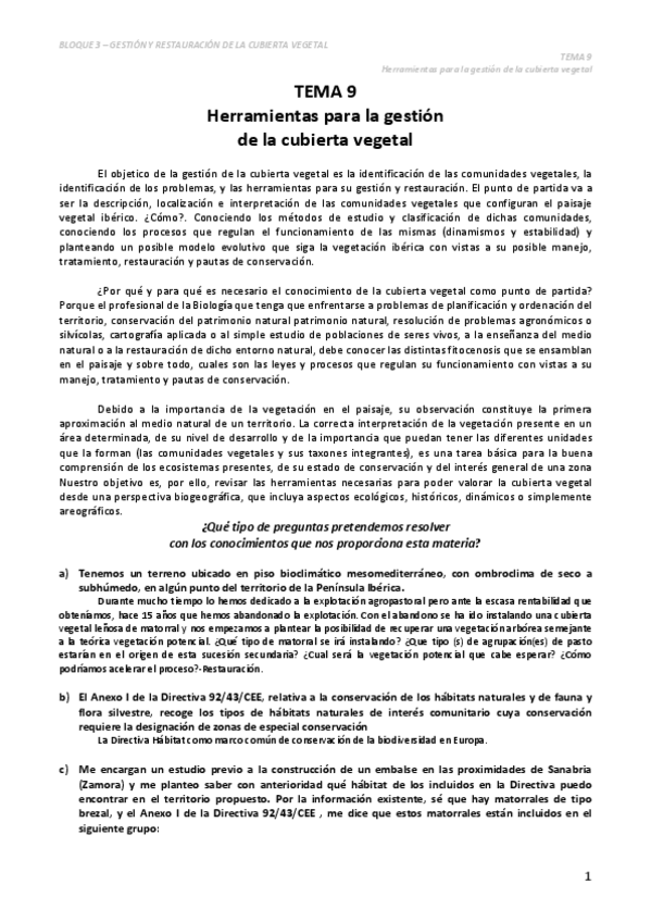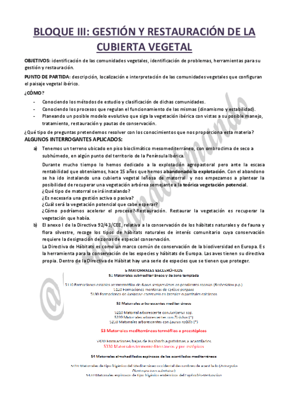 Bloque III - Gestión y Restauración de la Cubierta Vegetal