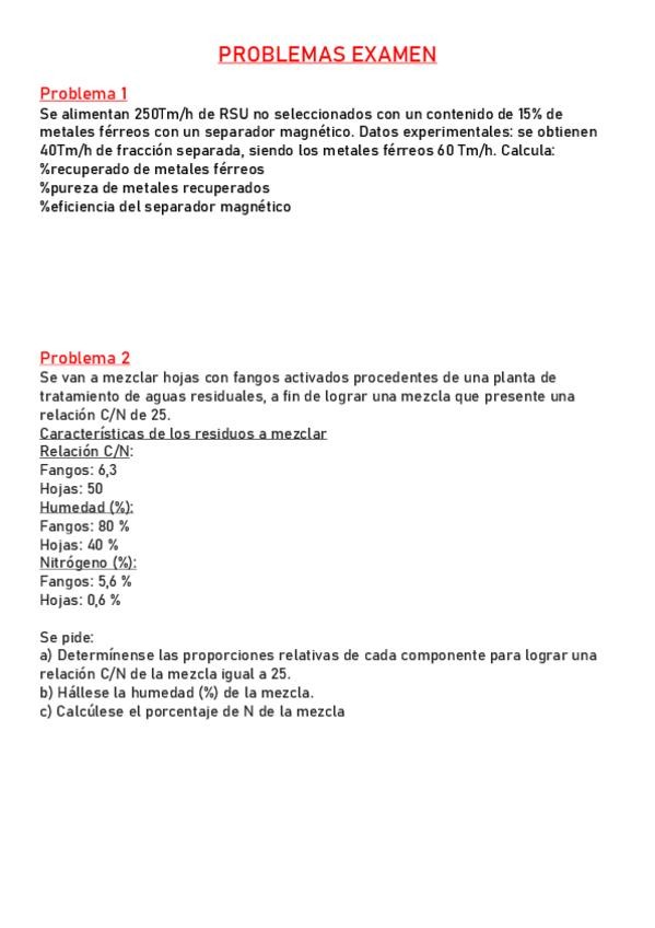 He publicado nuevos examenes de 3º Gestión, Tratamiento y Recuperación de Residuos: Problemas-examen.pdf