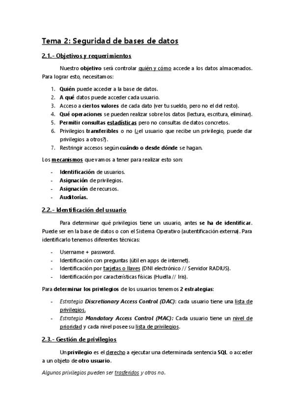 Resumen del tema 2 de GABD, me respaldo de los libros de las bibliografías y las notas que tomo de lo que dice Fernando en clase