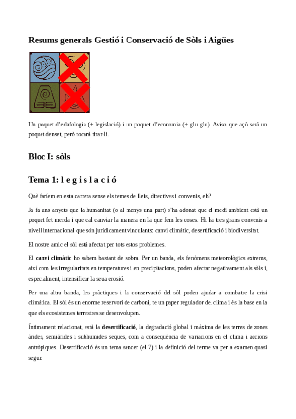 He publicado nuevos apuntes de 3º Gestión y Conservación de Suelos y Aguas: Resums generals Gestió i Conservació de Sòls i Aigües