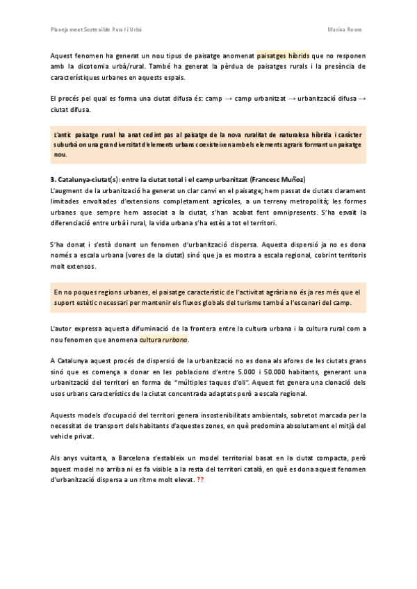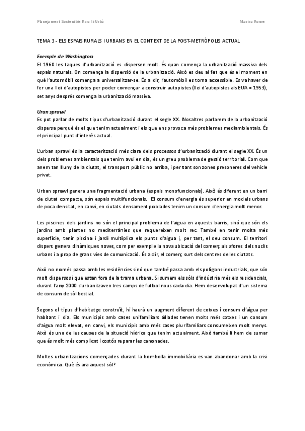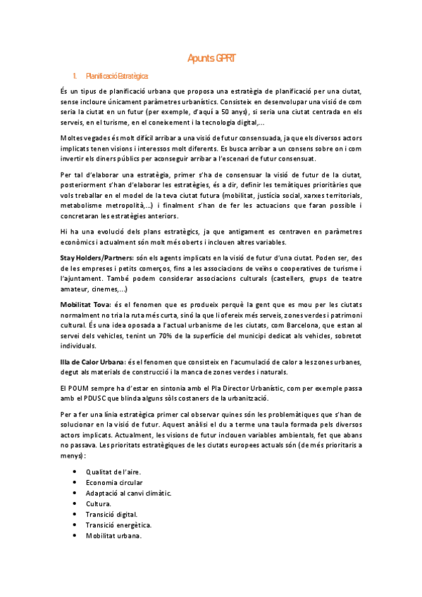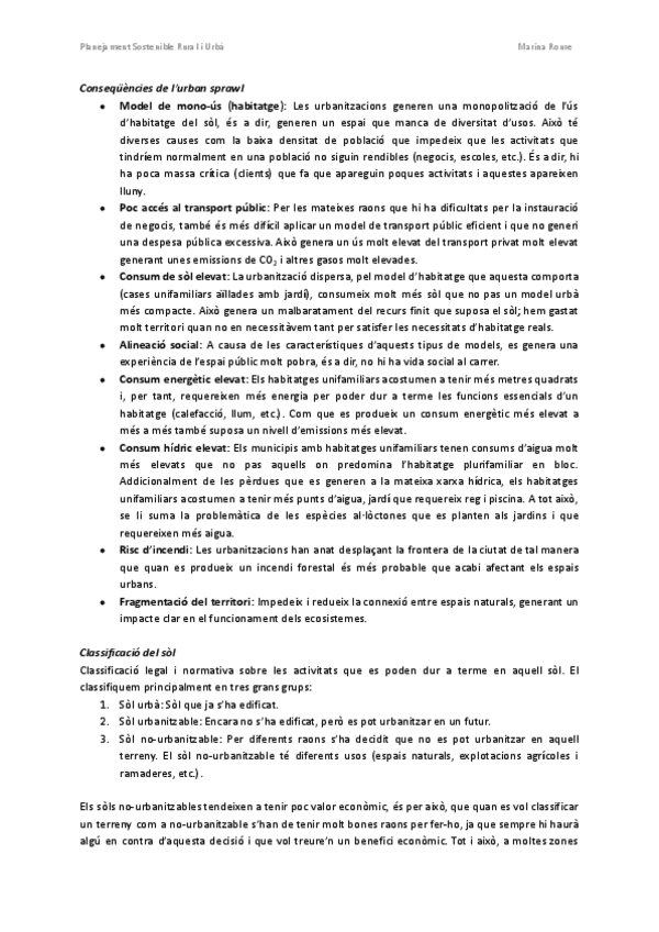 Apunts de l'assignatura de Planejament Sostenible Rural i Urbà del nou pla d'estudis de Ciències Ambientals