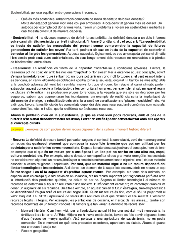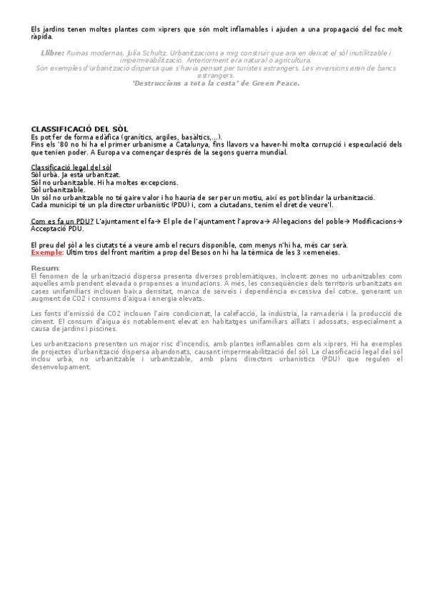 Resum de les lectures obligatòries per l'examen de Planejament Sostenible Rural i Urbà
