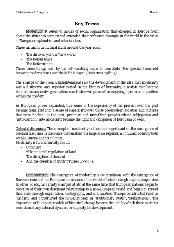 Globalización y Diáspora Apuntes