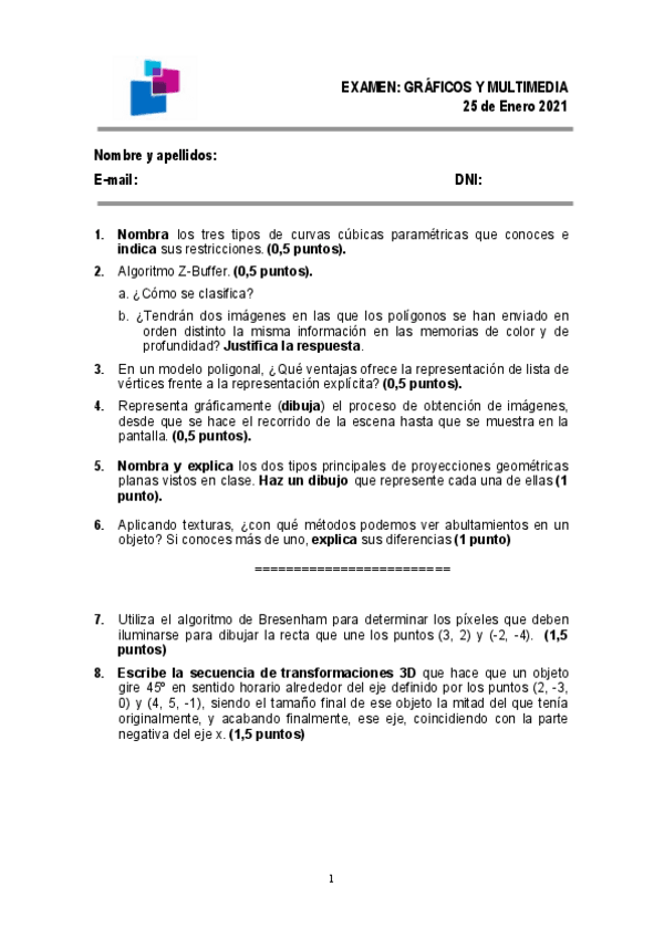 Exámenes resueltos de EI1025 (Gráficos y Múltimedia)
