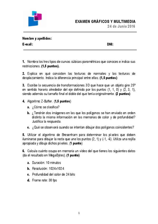 Alguien tiene algún examen final resuelto de Gráficos y Multimedia?