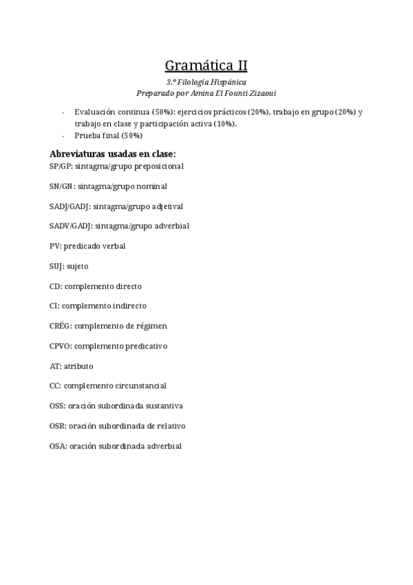 Gramática de la Lengua Española II
