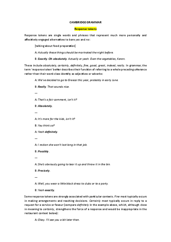 Todas las características importantes que estudiar de esta asignaturas, con ejemplos y definiciones del libro Cambridge Grammar