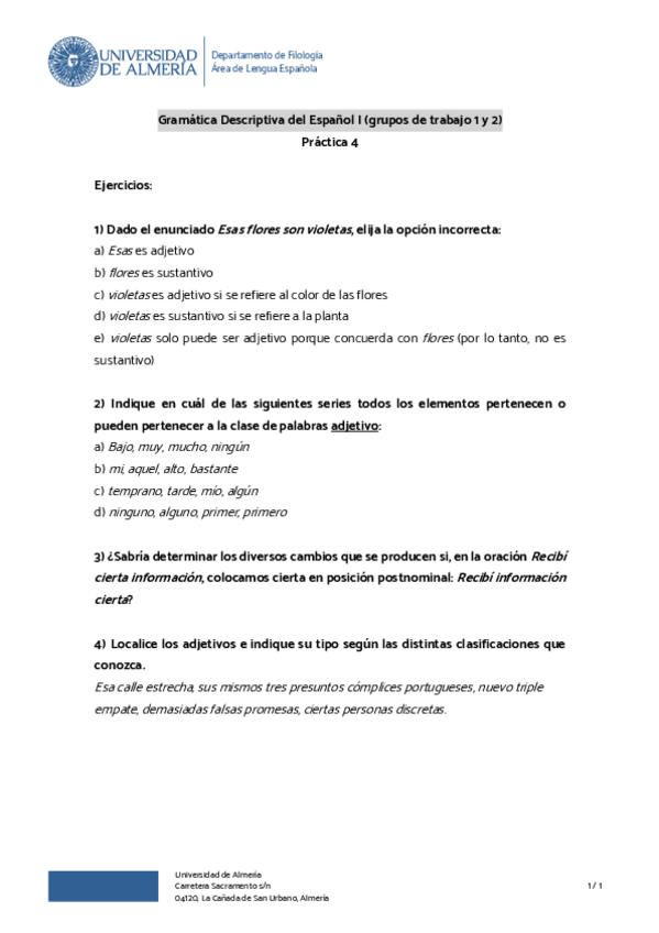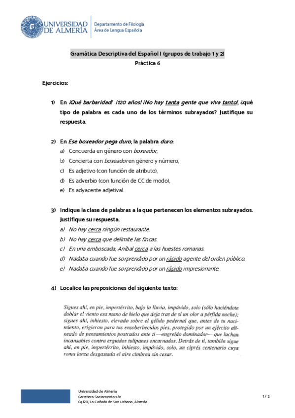 He publicado nuevos ejercicios de 1º Gramática Descriptiva del Español I: practica.docx