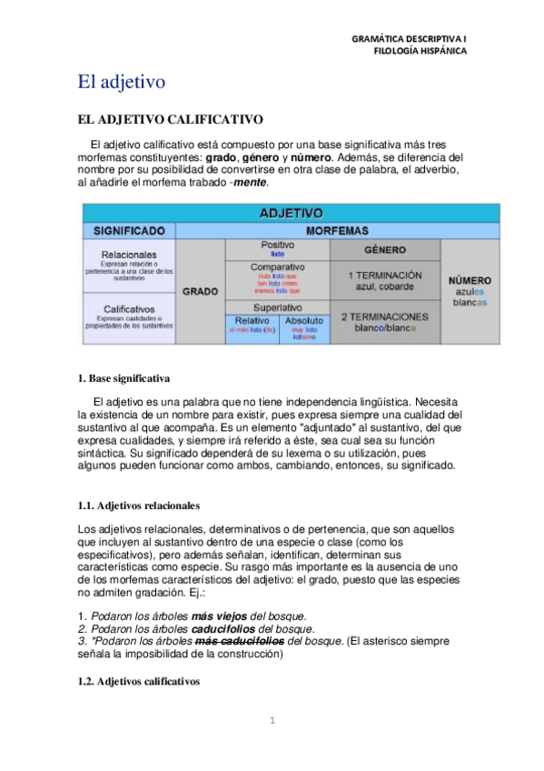 He publicado nuevos apuntes de 1º Gramática Descriptiva del Español I: EL ADJETIVO (GRAMÁTICA DESCRIPTIVA DEL ESPAÑOL II).pdf