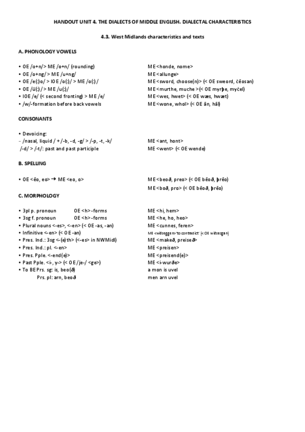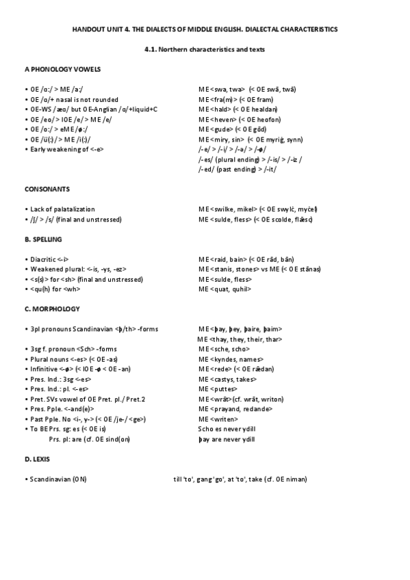 He publicado nuevos apuntes de 4º Gramática Histórica: Dialectal Developments and Main ME Dialects.pdf