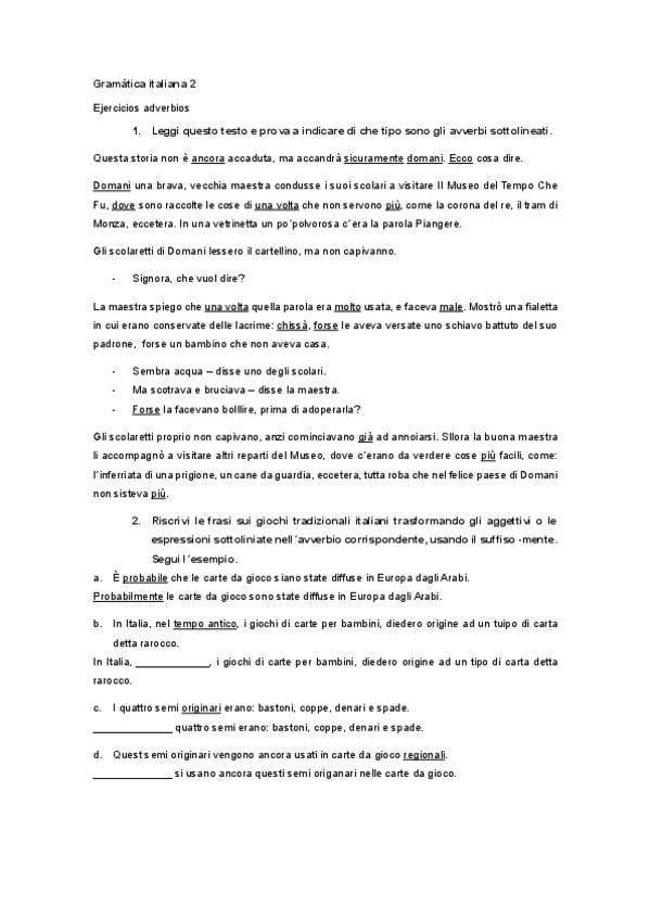 He publicado nuevos ejercicios de 2º Gramática Italiana 2: Ejercicios-adverbios.pdf
