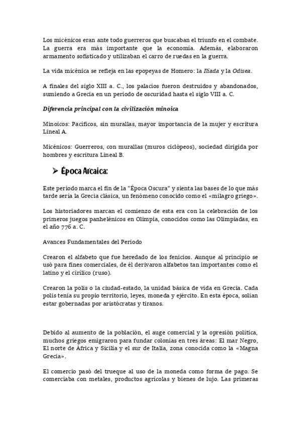 Soportes de escritura, Íliada, época oscura, época arcaica, organización política, Narciso y Eco, partes del cuerpo, colonizaciones griegas