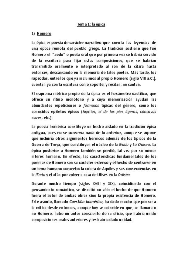 He subido el tema 1 de literatura griega, la épica. Estos resúmenes están bien estructurados y me funcionaron muy bien también a lo largo del curso.
