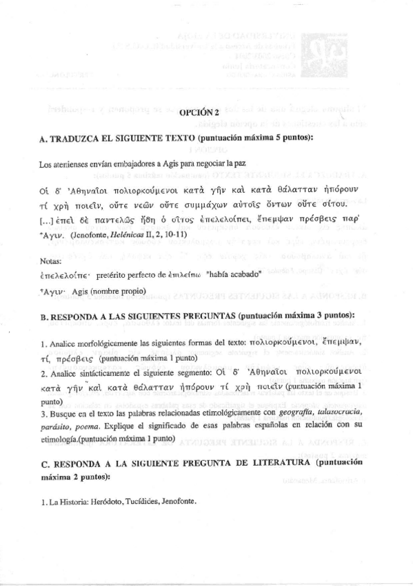 Examen EBAU Griego