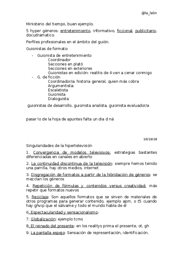 He publicado nuevos apuntes de 4º Guión especializado: Guion-especializado.pdf