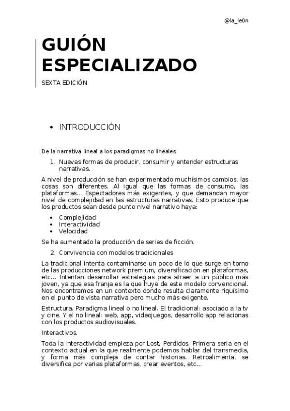 He publicado nuevos apuntes de 4º Guión especializado: Guion-especializado.pdf
