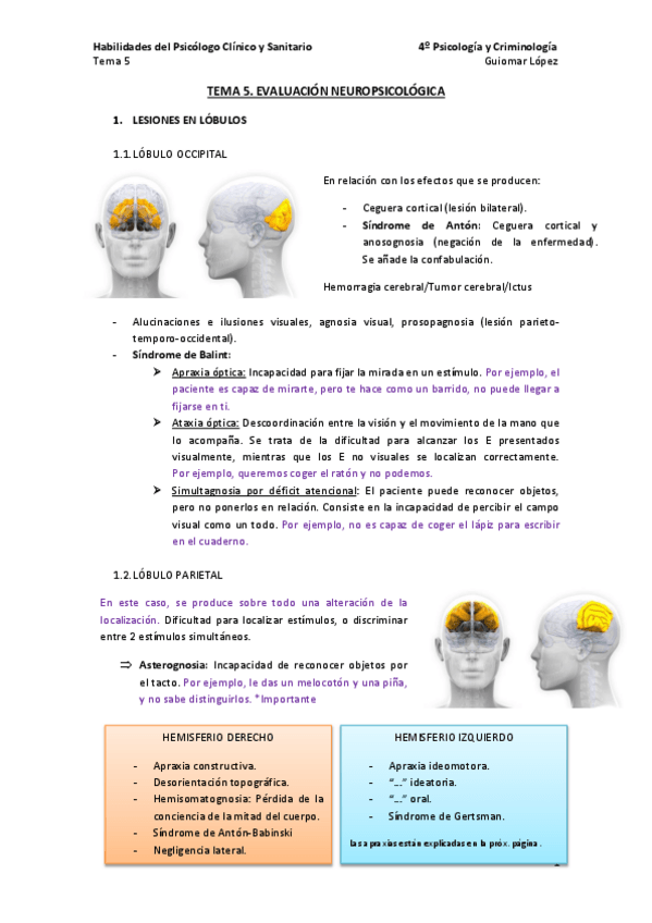 He publicado nuevos apuntes de 4º Habilidades del Psicologo Clinico y Sanitario: TEMA 5 EVALUACIÓN NEUROPSICOLÓGICA.pdf
