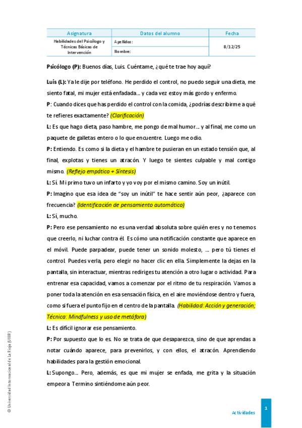 He publicado nuevos ejercicios de 1º Habilidades del Psicólogo y Técnicas Básicas de Intervención: Actividad-1.pdf