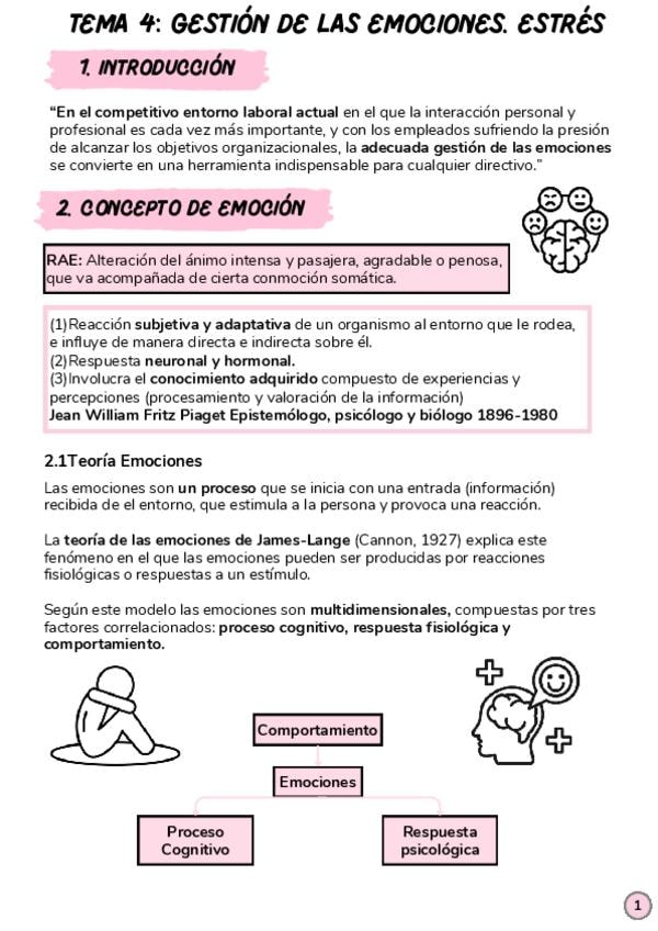 Apuntes habilidades directivas tema 4 gestión de las emociones y estrés.