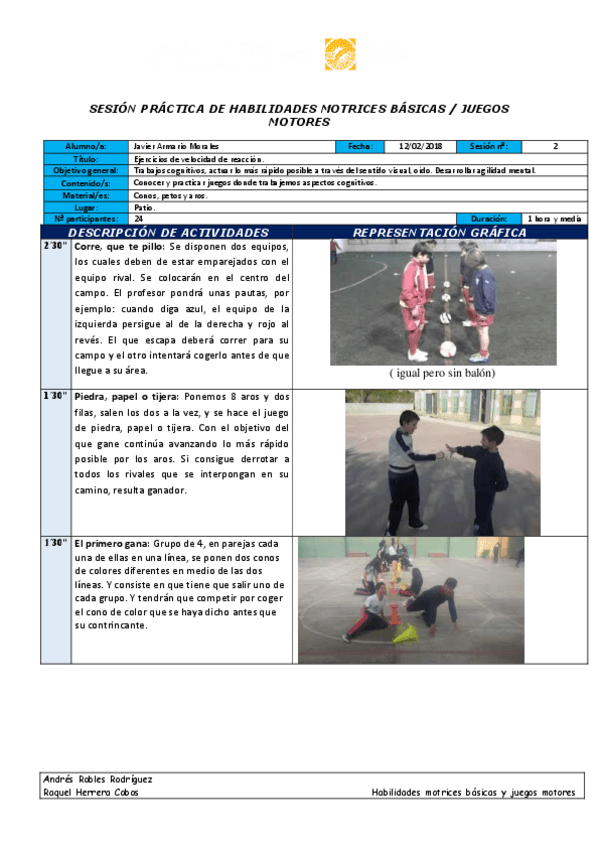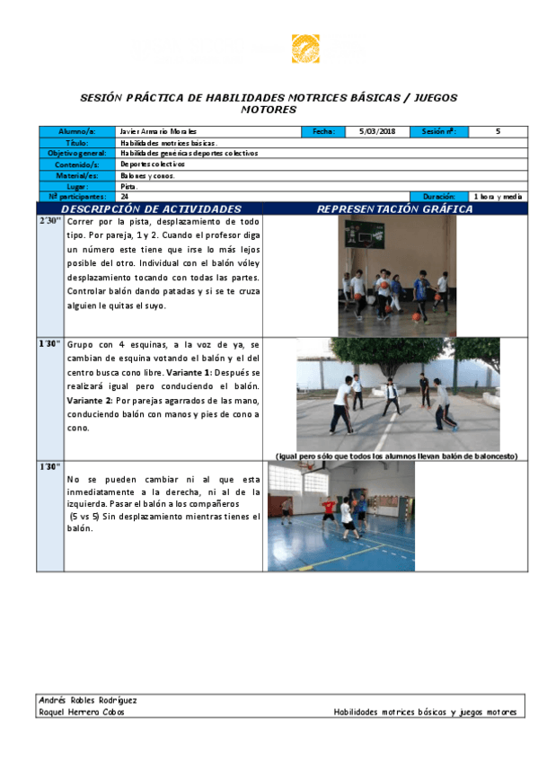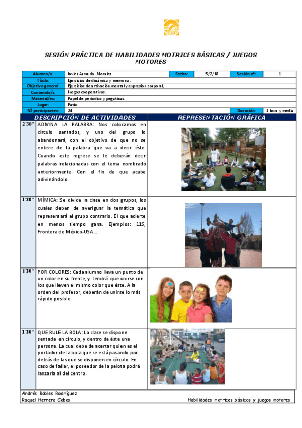 He publicado nuevos practicas de 1º Habilidades Motrices Básicas y Juegos Motores: sesiones