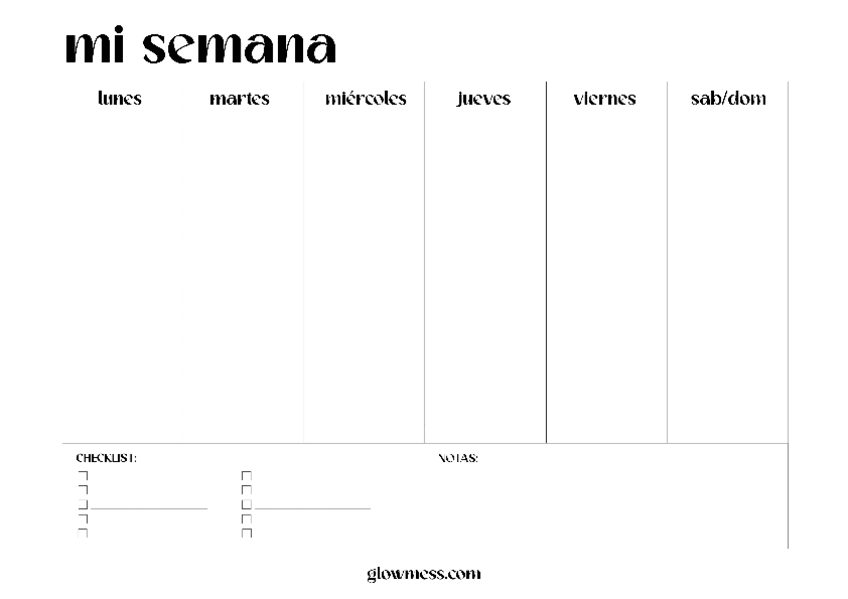 Planificador semanal imprimible para organizar tus tareas, citas y actividades. Ideal para estudiantes y profesionales que buscan mantener su semana productiva y bien estructurada.