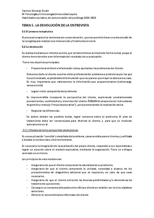 He publicado nuevos apuntes de 4º Habilidades Sociales y de Comunicación para Psicología: Tema-5.-La-devolucion-de-la-entrevista.pdf