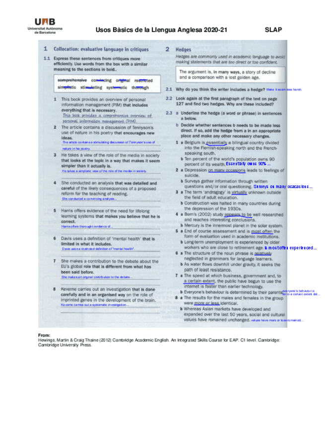He publicado nuevos ejercicios de 1º Habilitats Acadèmiques Orals en Anglès I: Collocations-and-Hedging.pdf