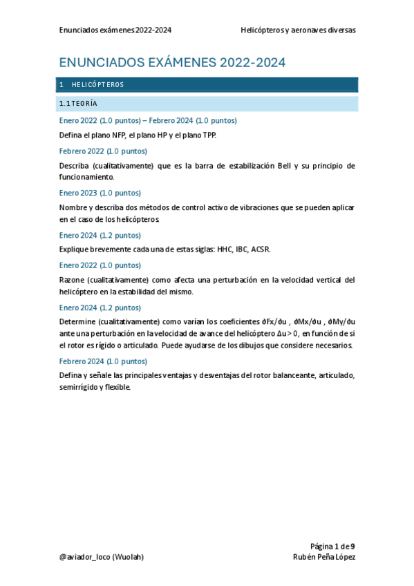 Resolución de los exámenes de Helicópteros de 2022 a 2024. No se si es la resolución correcta ni si las soluciones son exactas, solo son mis apuntes para estudiar la asignatura.