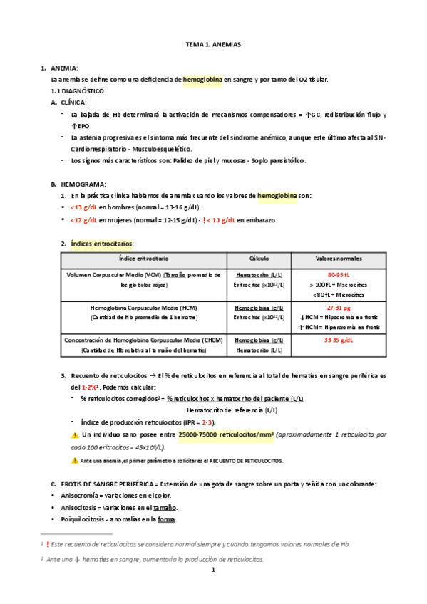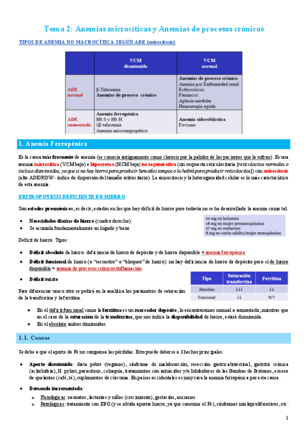 El tema 3 (anemias corpusculares) es diferente a otros años. El resto son cosillas que faltan de esos temas