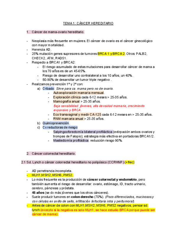 Tema 1, resumen tto cáncer de mama (examen 2025) y práctica en aula de Oncología