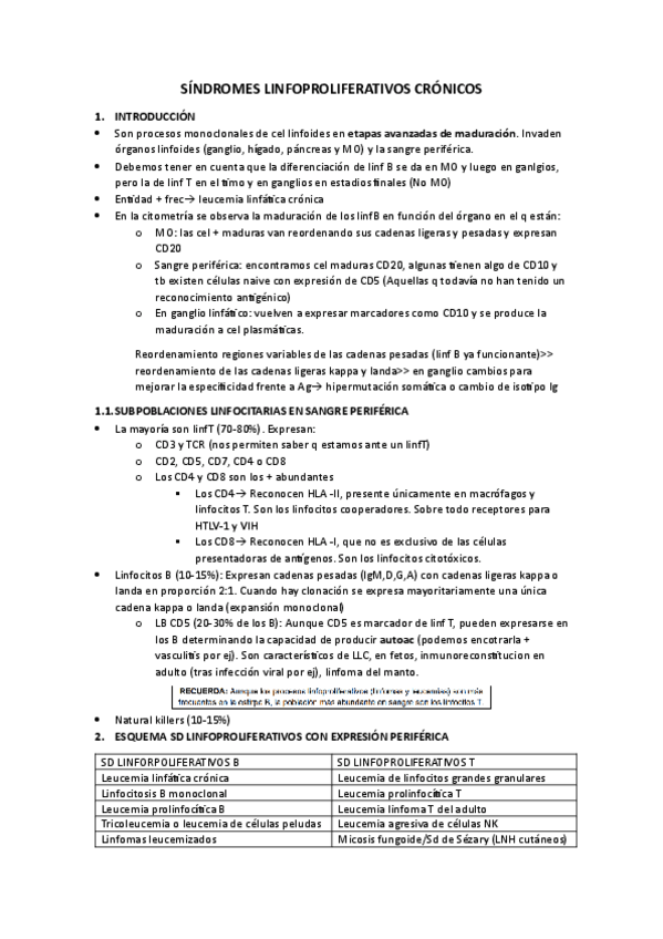 He publicado nuevos apuntes de 5º Hematología y Oncología Médica: SINDROMES-LINFOPROLIFERATIVOS-CRONICOS.pdf