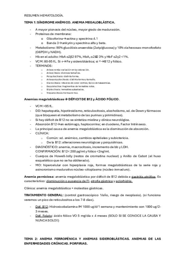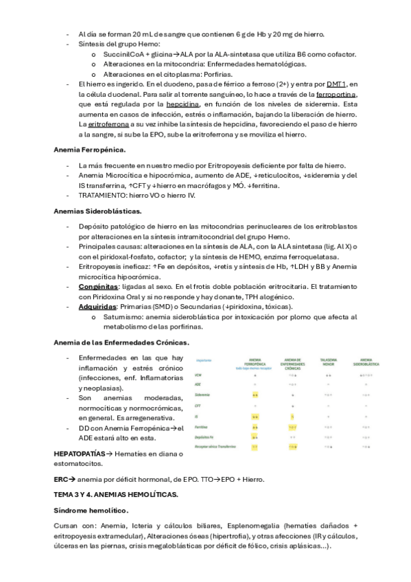 El tema 3 (anemias corpusculares) es diferente a otros años. El resto son cosillas que faltan de esos temas