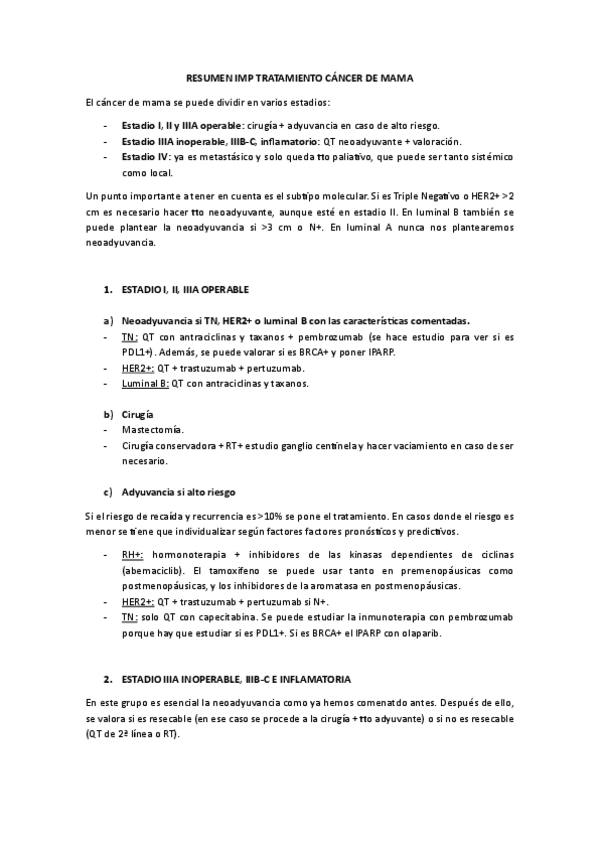 Tema 1, resumen tto cáncer de mama (examen 2025) y práctica en aula de Oncología