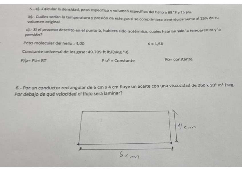 Propiedades de los gases ideales y numero de Reynolds