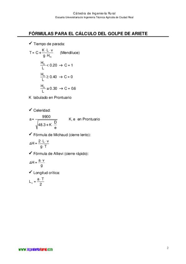 He publicado nuevos apuntes de 2º Hidráulica: Formulas-de-hidraulica.pdf