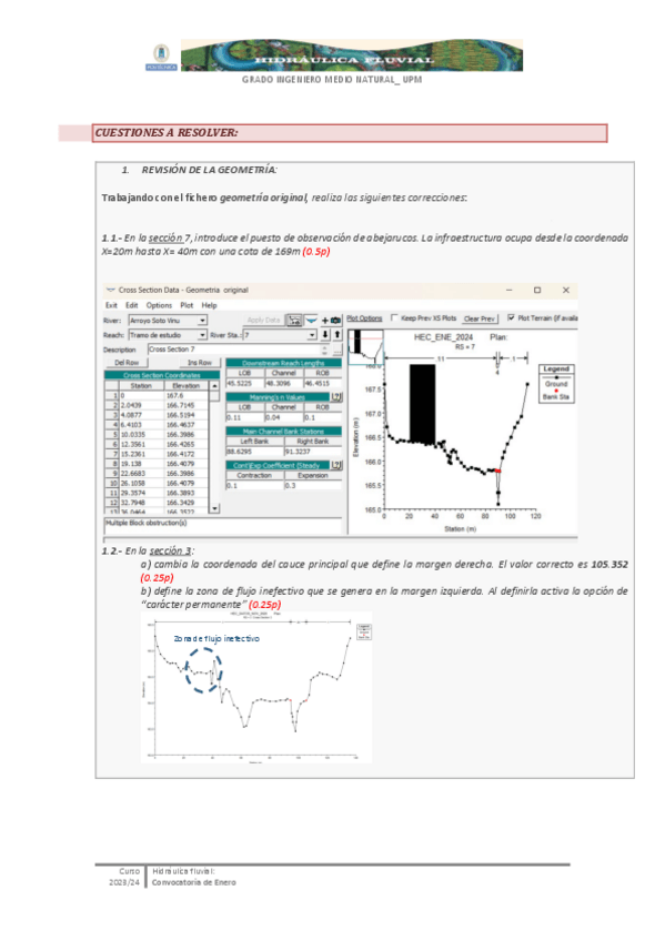 He publicado nuevos examenes de 2º Hidráulica Fluvial: Examen-Hec-2012-13.pdf