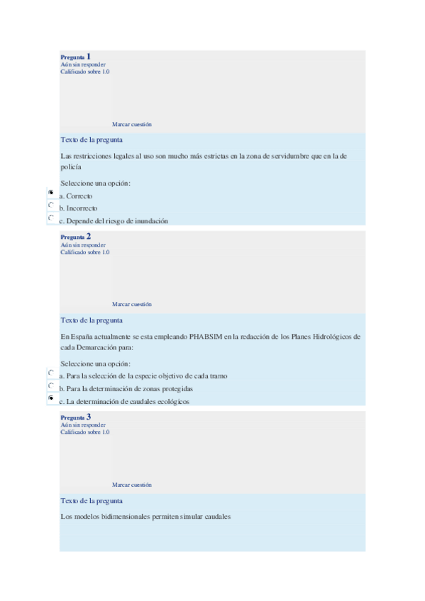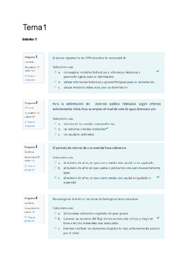 Preguntas Modulo 1 con respuesta corregida de Hidráulica fluvial