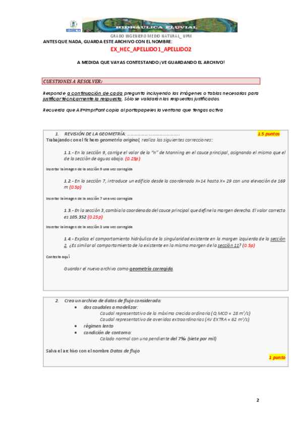 He publicado nuevos examenes de 2º Hidráulica Fluvial: EXHECAPELLIDO1APELLIDO-2.docx