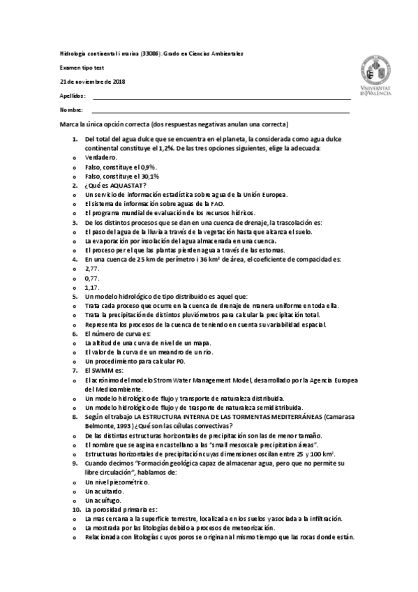He publicado nuevos examenes de 2º Hidrología Continental y Marina: PREGUNTAS-SEGUNDA-CONVOCATORIA-MARINA.pdf