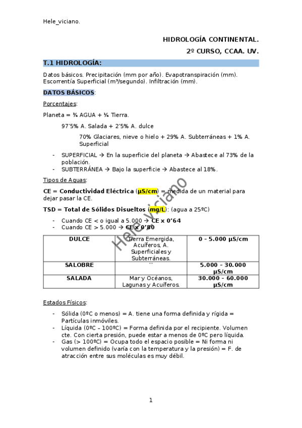 He publicado nuevos apuntes de 2º Hidrología Continental y Marina: Resumen-H.pdf