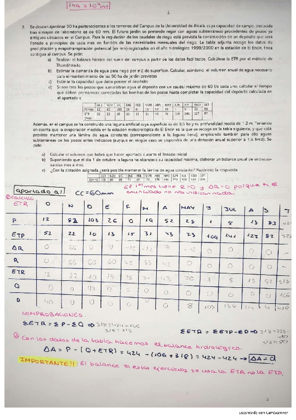 He publicado nuevos apuntes de 2º Hidrología: Seminario 5: Aplicación de la ecuación del balance hidrológico: Casos propuestos.pdf