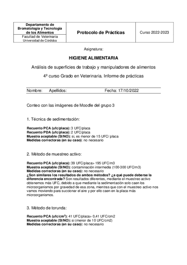 He publicado nuevos apuntes de 4º Higiene Alimentaria: Informe-practica-4-higiene.pdf