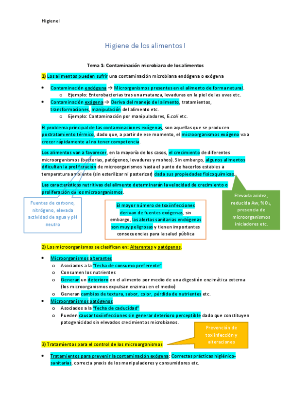 HIGIENE DE LOS ALIMENTOS I
