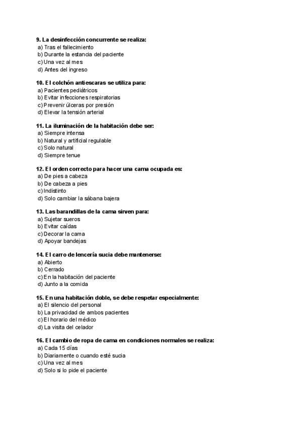 Temario y ejercicios de la unidad del paciente de Higiene en el Medio Hospitalario.