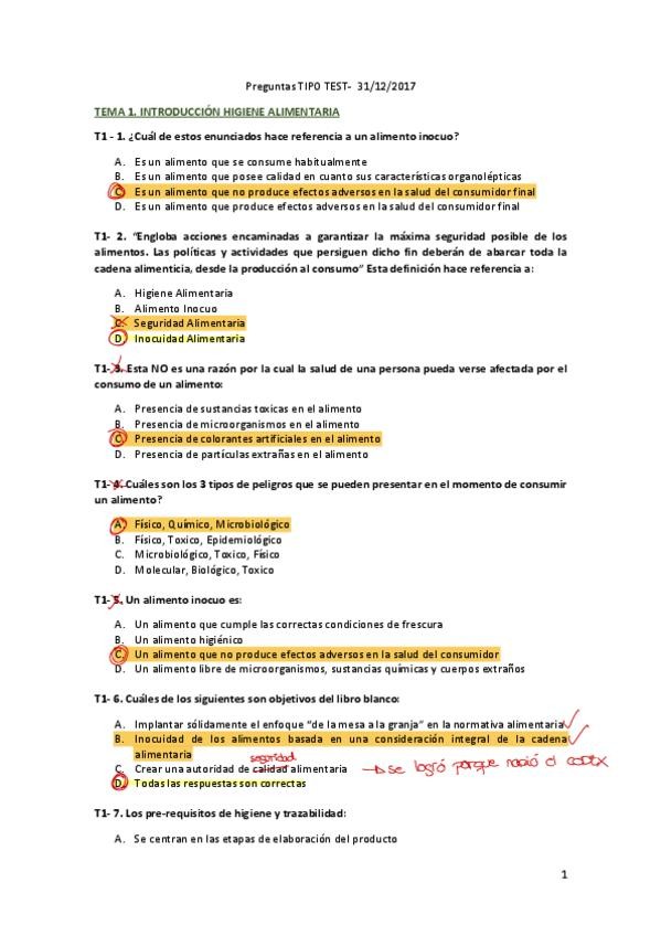 Posibles y Probables Preguntas con Respuesta 2º Parcial Higiene y Seguridad Alimentaria 3ºUCM