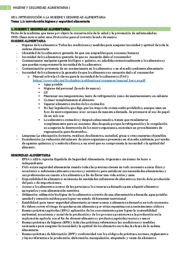 Apuntes Higiene y Seguridad Alimentaria I