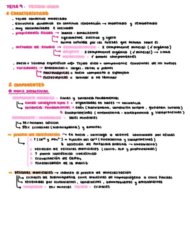 Resumen de los temas de Tejido Óseo (Histología general) Tablas y esquemas