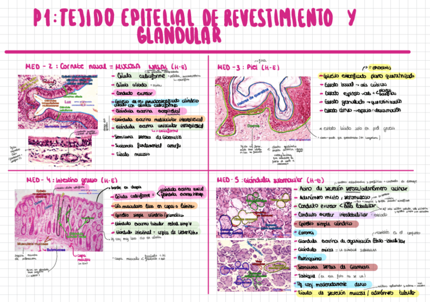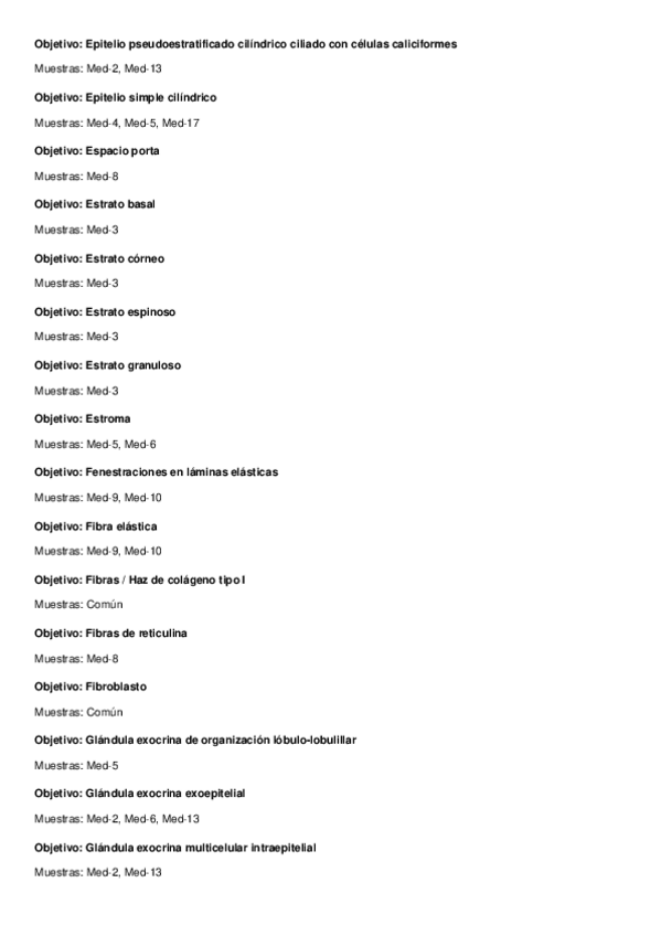 aquí dejo una tabla de resumen de objetivos y en qué muestras encontrarlos (laboratorio-prácticas histología general)