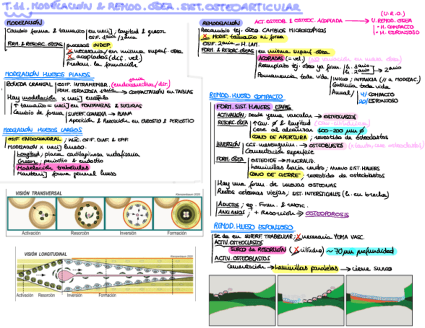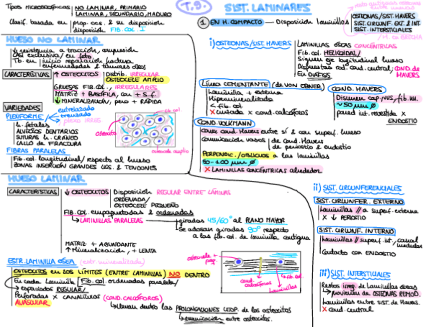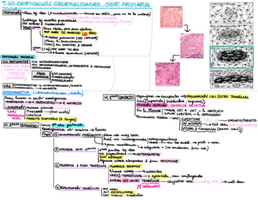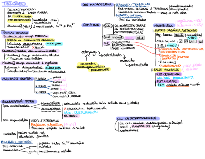 Resumen de los temas de Tejido Óseo (Histología general) Tablas y esquemas