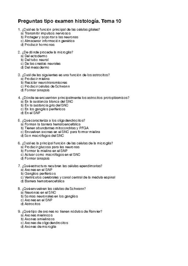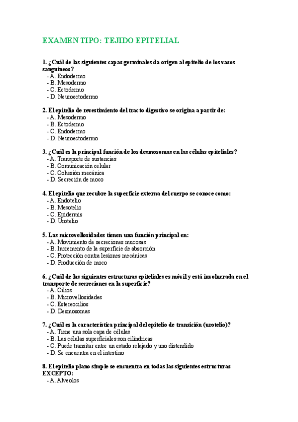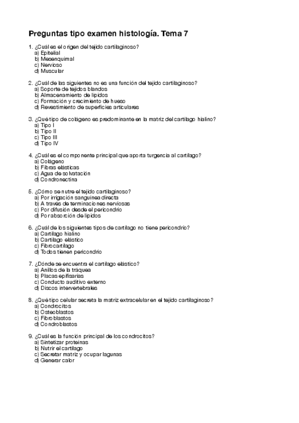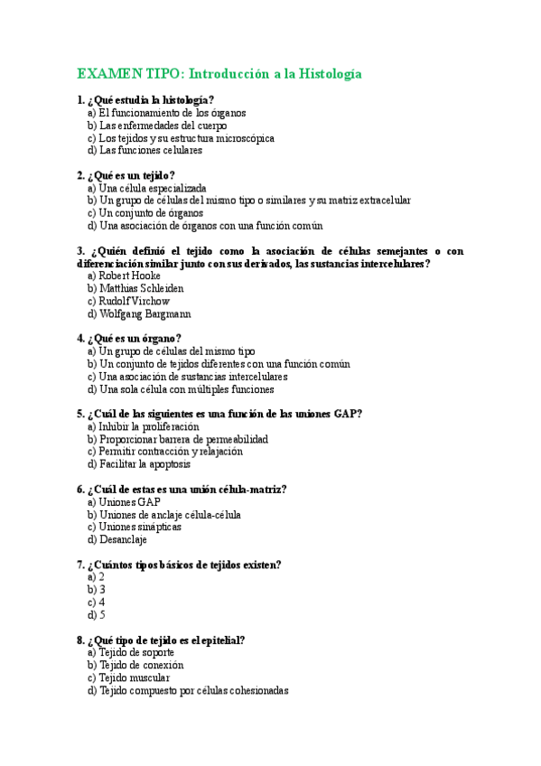 Cuestionarios de repaso cada tema segundo parcial de histología